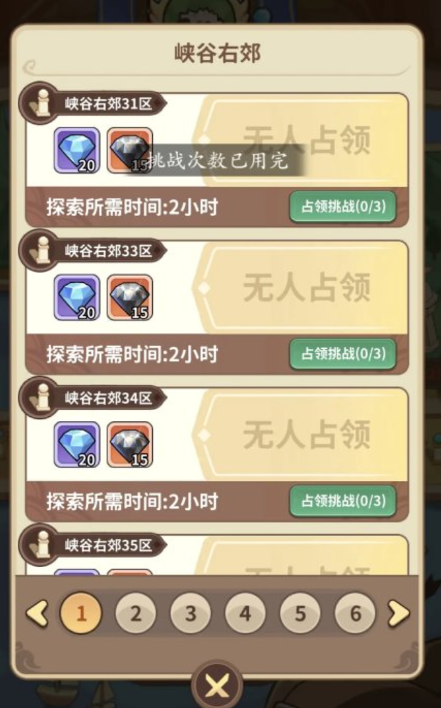 该玩法每日重置,共提供三轮挑战机会。全部挑战完成后可获得基础资源奖励,而不同难度关卡的收益与门槛存在明显差异。合理选择挑战对象,是新手快速积累资源的关键。挑战分为两类守卫类型:一类为“怪物看守”,由低等级基础小怪组成,对阵容强度无硬性要求,任意配置均可稳定通关;另一类为“玩家看守”,其守军战力随对手实际战力动态匹配,若自身战力不足,强行挑战易导致失败,建议优先避开此类目标。