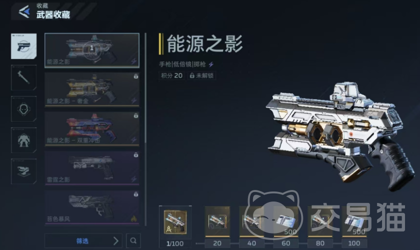 能源之影是当前高人气手枪之一。基础形态下为高射速近战型手枪;激活主动技能后,进入自动索敌模式,系统将实时锁定最近敌方目标,大幅降低瞄准压力。该技能特别适配主武器换弹空档期——玩家可无缝切出使用,并在手枪弹匣耗尽时触发投掷机制,命中即造成电属性范围伤害,兼具控场与补伤双重价值。