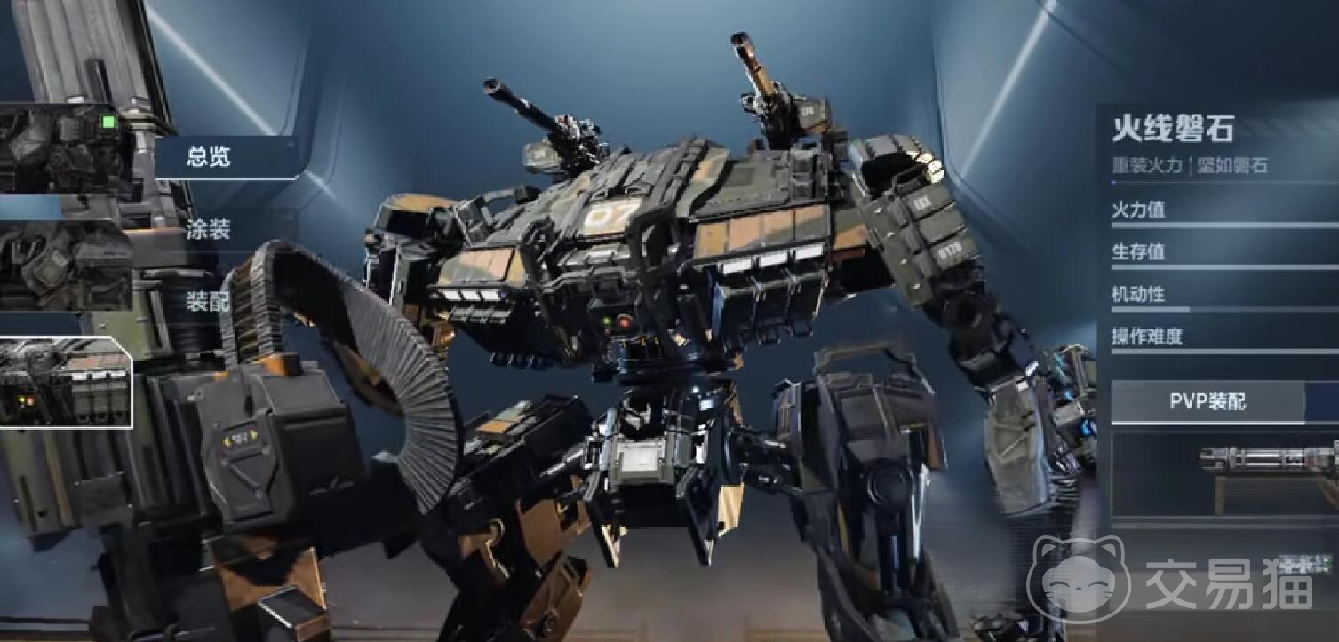 火线磐石则代表重装火力流派的典型设计。初始搭载的双联装重装加农炮,单发即可对满血目标造成约50%伤害;若额外装配喷火器,则可在近距交火中完全摆脱瞄准依赖,通过范围灼烧持续施加压力。该机体虽机动性较弱,但凭借爆发输出与压制稳定性,在据点争夺、狭窄通道等场景中表现尤为突出。