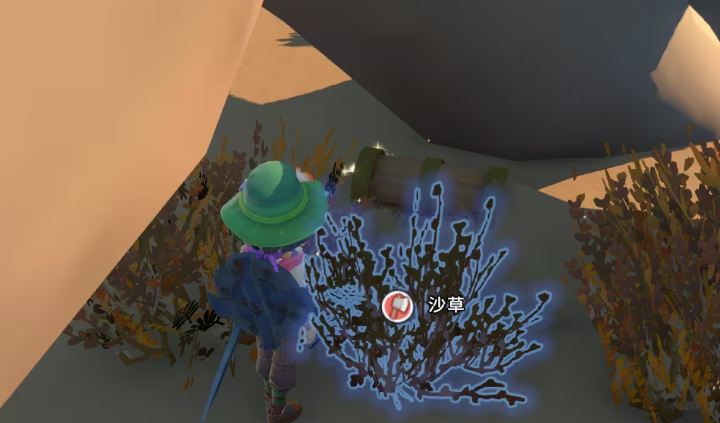 下骨架后,正下方沙地表面可见一丛密集沙草。其根部掩藏第二个宝箱,但该宝箱处于隐形状态,必须使用羽毛掸子反复清扫沙草覆盖区域方可显现并开启。