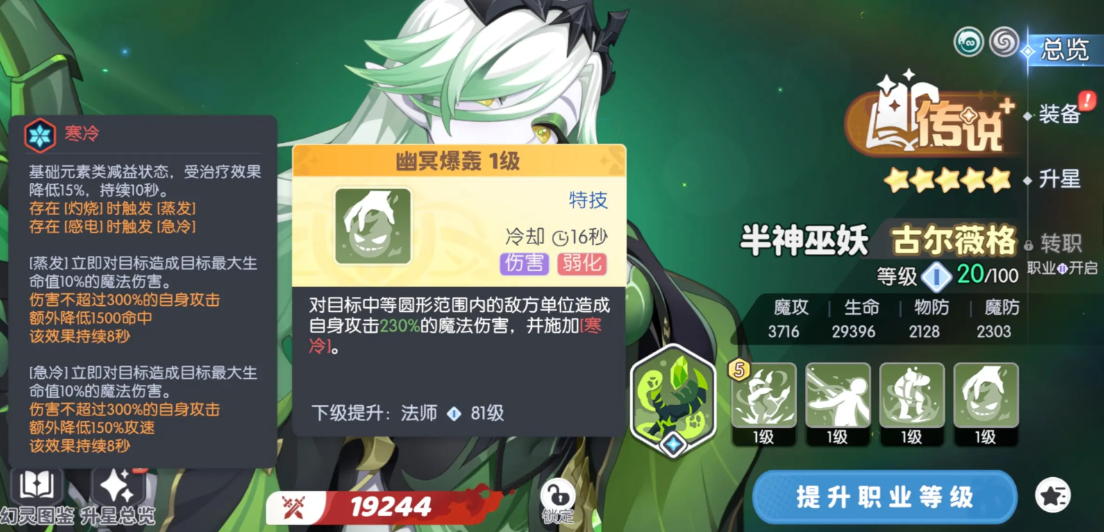 本阵容以元素反应为核心逻辑,成员包括妖精仙后、炎魔、英雄王、仲夏坦克与半神巫妖。其中英雄王与仲夏坦克共同承担前排承伤职责;妖精仙后除提供稳定治疗外,其技能可对已处于元素减益状态的目标额外触发魔防降低效果;炎魔作为主输出,可在触发蒸发或急冷等元素反应后减少奥义冷却时间,大幅提升爆发频率。