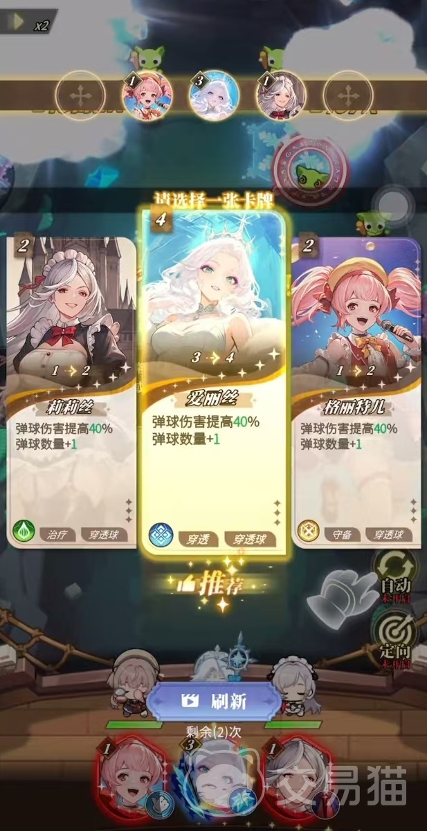 其核心机制“雪花协同”进一步强化了战术纵深。爱丽丝可周期性召唤至多2枚雪花,悬浮于战场。当任意穿透类弹球累计命中单朵雪花达12次后,即触发【冰晶】效果:锁定当前生命值最高的敌人,发动高额穿透伤害,并弹跳3次。该机制对高血量单体目标具备极强针对性,是攻坚关卡Boss的关键手段。