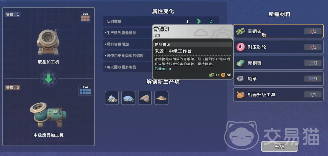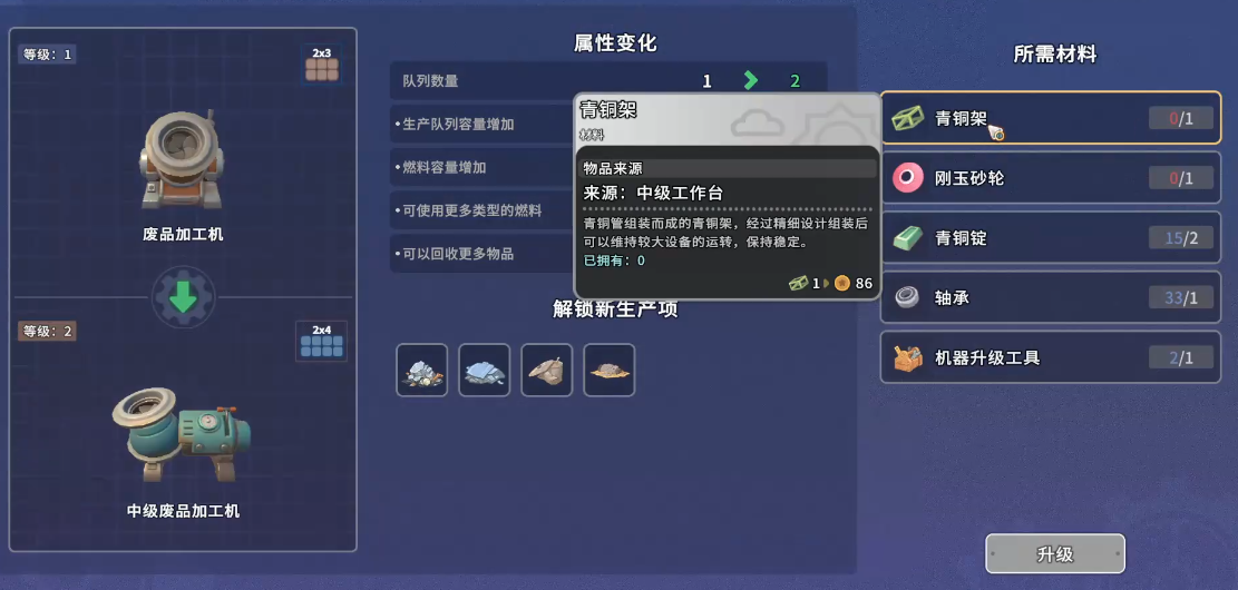 游戏初期,生产结构较为基础,所有新增项目均依赖前置条件——即特定原材料的储备量达标。换言之,资源积累是解锁的前提,而非单纯升级建筑或提升等级。因此,合理规划每日采集、订单交付与资源转化节奏,是推进生产扩张的第一步。