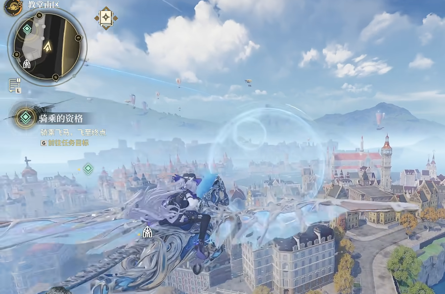 最后一段为纯空中飞行测试,场景中仅存在多个加速光环。玩家需操控飞马准确飞入光环中心,触发持续加速效果。此阶段操作相对稳定,只要前序环节未失误,即可顺利抵达终点灯塔,与目标NPC交互后即视为飞马考试成功完成。