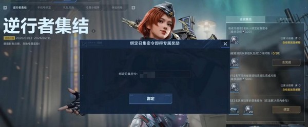 绑定成功后,左侧将生成专属召集链接与密令。当好友使用该密令完成注册并首次登录,双方均可获得基础奖励;若进一步组队参与对局,还可额外累积积分。这些积分可用于兑换实战装备、强化材料等开荒刚需道具。