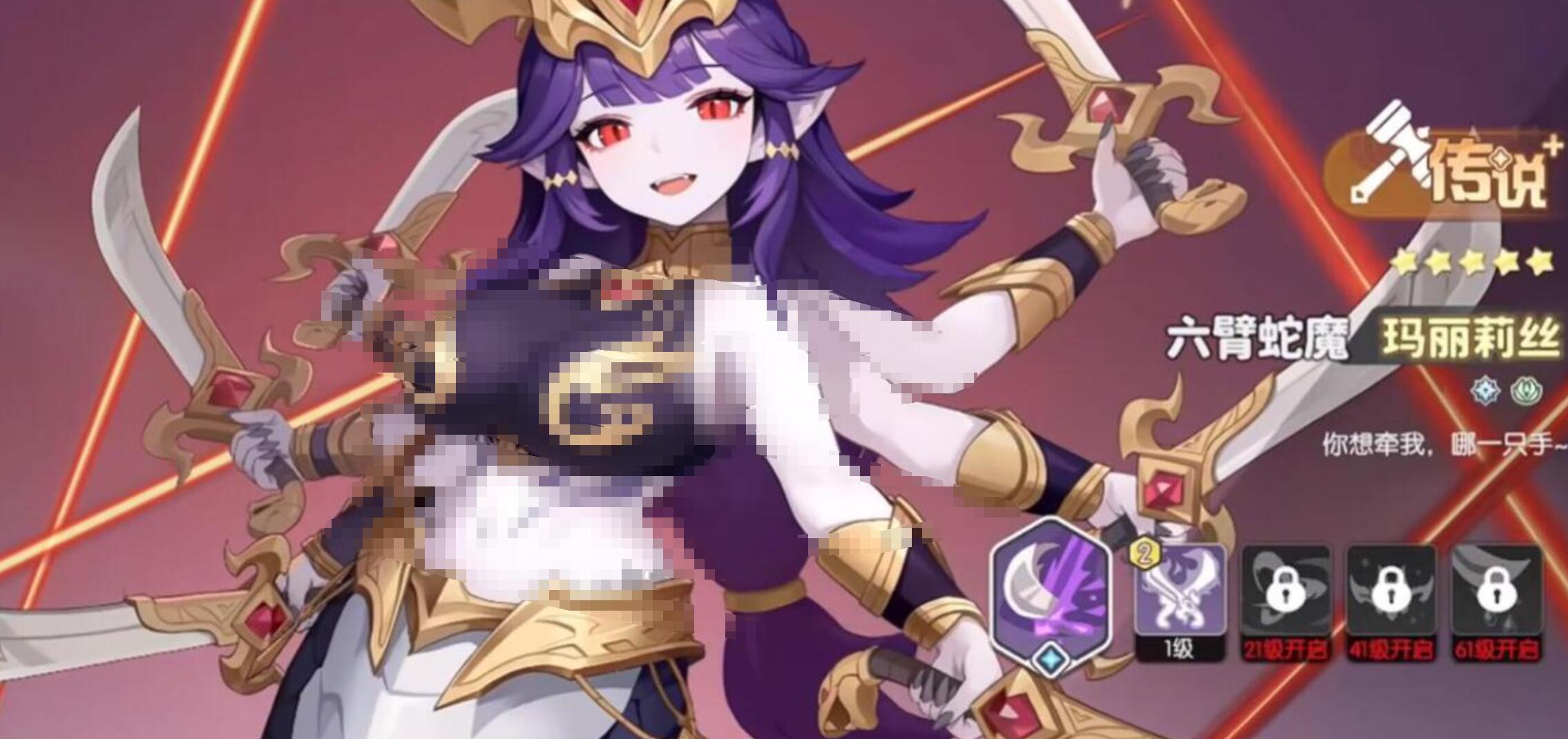 当前限定池推荐聚焦三位高适配性角色:六臂蛇魔玛丽、剑魔与炎魔伊芙利特。其中,六臂蛇魔玛丽是新手阶段极具战略价值的战士型角色。她兼具输出与防御能力,在狂野状态下不仅能减少自身奥义技能消耗,还可为全队提供减伤效果,显著提升队伍容错率与持续作战能力,是开荒期最稳妥的前排选择。