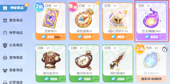 神秘商店中的巨龙精魄兑换(500钻石/100个)适用于前期快速突破需求。在职业等级未满100、尚未触发职业共鸣前,该途径能有效加速等级成长与推图进度;但一旦达成全职业100级并激活共鸣机制,精魄带来的等级提升边际效益明显下降,此时应主动停止每日兑换,转向其他更具持续价值的方向。派遣刷新功能虽可提升任务品质,但结果完全随机,存在较高钻石沉没风险,非必要情况下不建议投入。