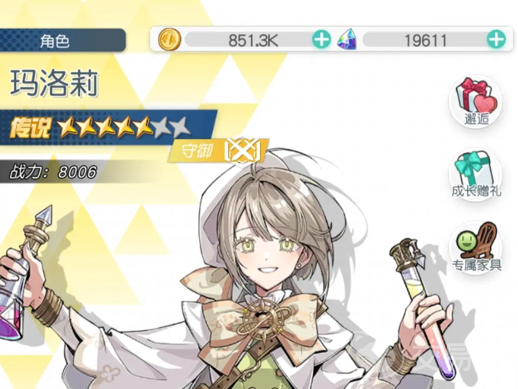 第四位是玛洛莉。泛用性强,适配多种队伍结构,但觉醒增益有限。其核心优势在于药水系爆发机制——对Boss释放药水后触发高额爆炸伤害,属于典型的“Boss特化型”输出角色。