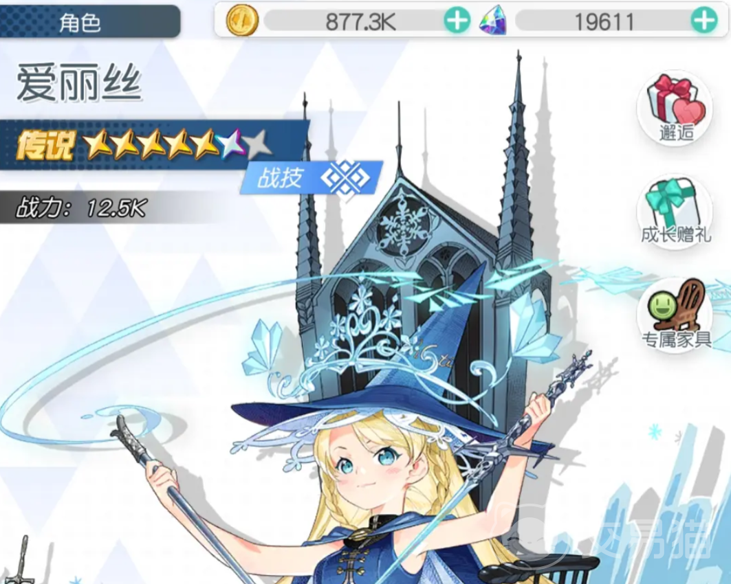 第五位为爱丽丝,技伤队唯一指定主C。以高频技能释放与稳定持续输出见长,清图效率极高;所有技能(含觉醒技)均具备明确Boss压制能力,无需复杂操作即可达成稳定通关节奏。
