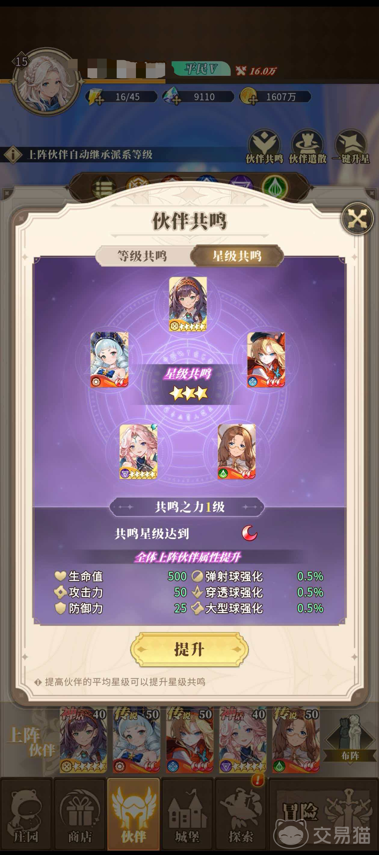 伙伴共鸣包含两大维度:等级共鸣与星级共鸣。等级共鸣要求所有已编入战斗阵容的角色达到指定等级门槛,达成后可提升“共鸣之力”,直接强化玩家基础属性;星级共鸣则以全体上阵伙伴的平均星级为判定依据——仅当平均星级满足条件时,方可解锁对应层级的共鸣效果。值得注意的是,星级共鸣带来的全队属性增幅显著高于等级共鸣,因此在资源分配中应优先保障主力阵容成员的星级同步成长。
