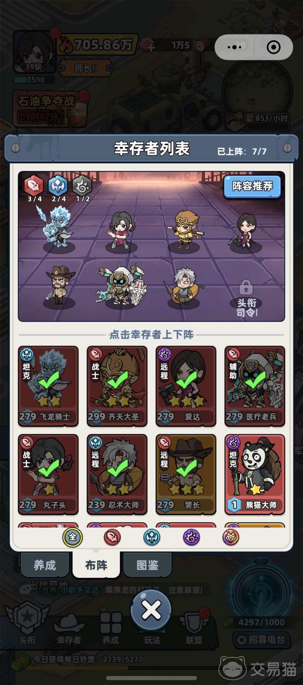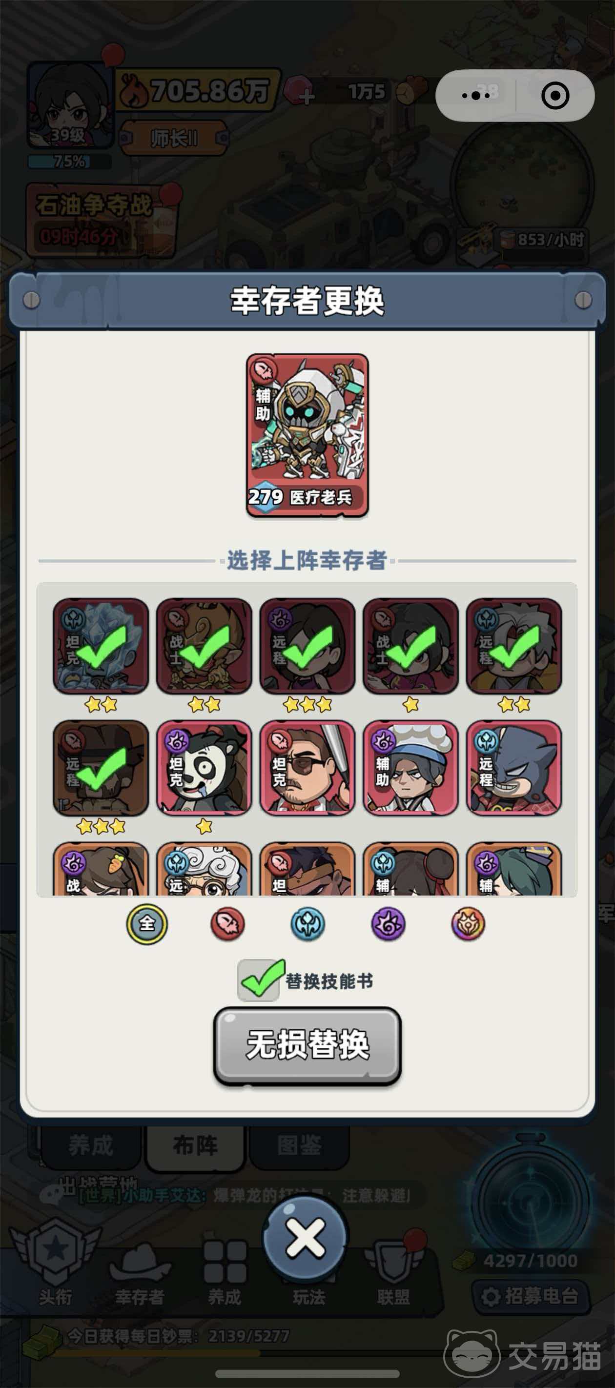 角色更换操作路径清晰:进入游戏主界面后,点击屏幕底部导航栏中的“幸存者”入口;在幸存者总览页中,向下滚动至页面底部,选择“布阵”功能模块。此时将显示当前已部署的六人战斗阵容。若需替换某一位角色(例如当前上阵的医疗老兵),只需轻点该角色头像,系统即跳转至专属替换界面。在下方可选幸存者列表中,点击目标角色即可完成无损替换。特别提示:务必勾选“同步替换技能书”选项,避免手动重新配置技能,节省养成资源与时间成本。
