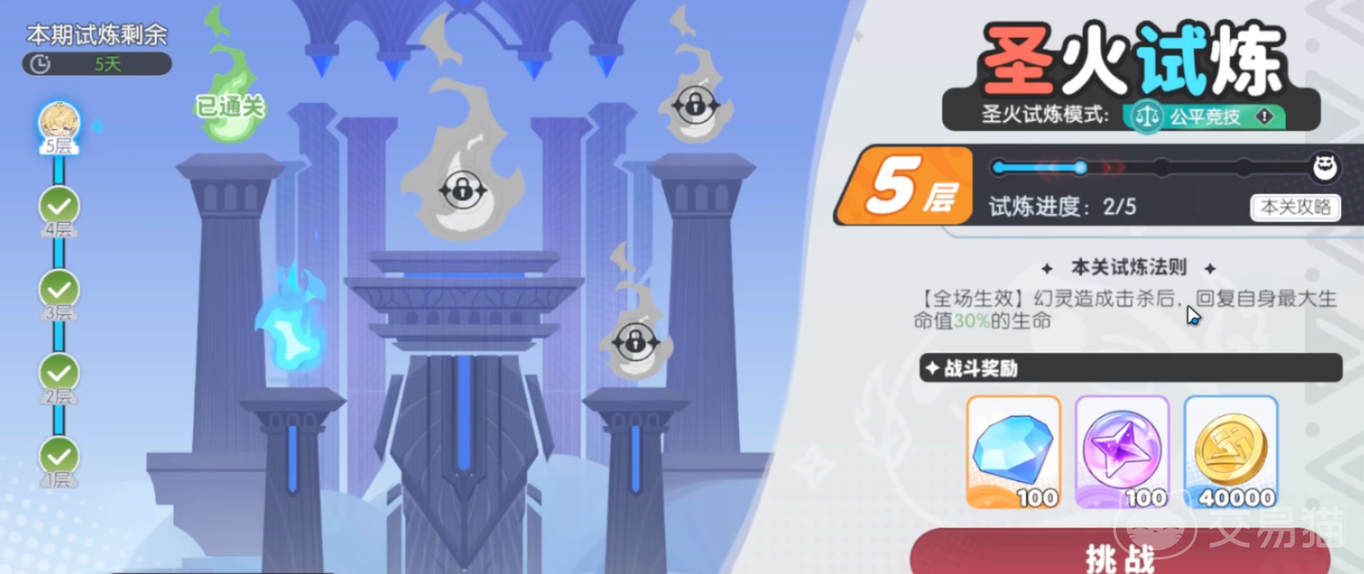 需特别注意:圣火试炼采用标准化战力设定——所有幻灵基础等级、星级、装备属性均被系统锁定,仅允许使用角色本体技能、龙巢技能、龙语魔法及巨龙专属机制。这意味着练度差异被大幅压缩,策略性布阵与技能释放节奏成为通关关键。试炼周期为每赛季持续8天,逐层解锁,通关每层均可领取对应钻石与金币,第五层通关奖励固定为1张神话召唤券,具备极高资源价值。