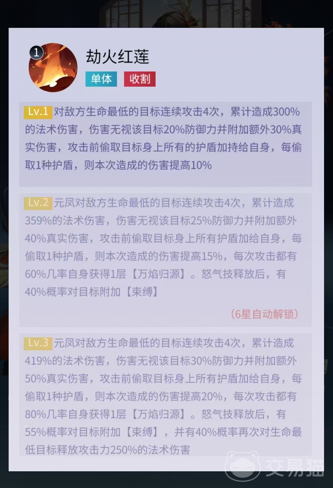 元凤的一技能具备鲜明的战术指向性:锁定敌方当前生命值最低单位,连续发动四段法术攻击;每次命中均附带无视部分防御的真实伤害效果;更关键的是,在首次攻击前,可强制转移目标身上所有护盾至自身,且所转移护盾总量直接提升本次连击总伤。该机制使其成为护盾流阵容的天然克星,在面对依赖护盾续航的敌方前排时,能实现高效破防与快速斩杀。