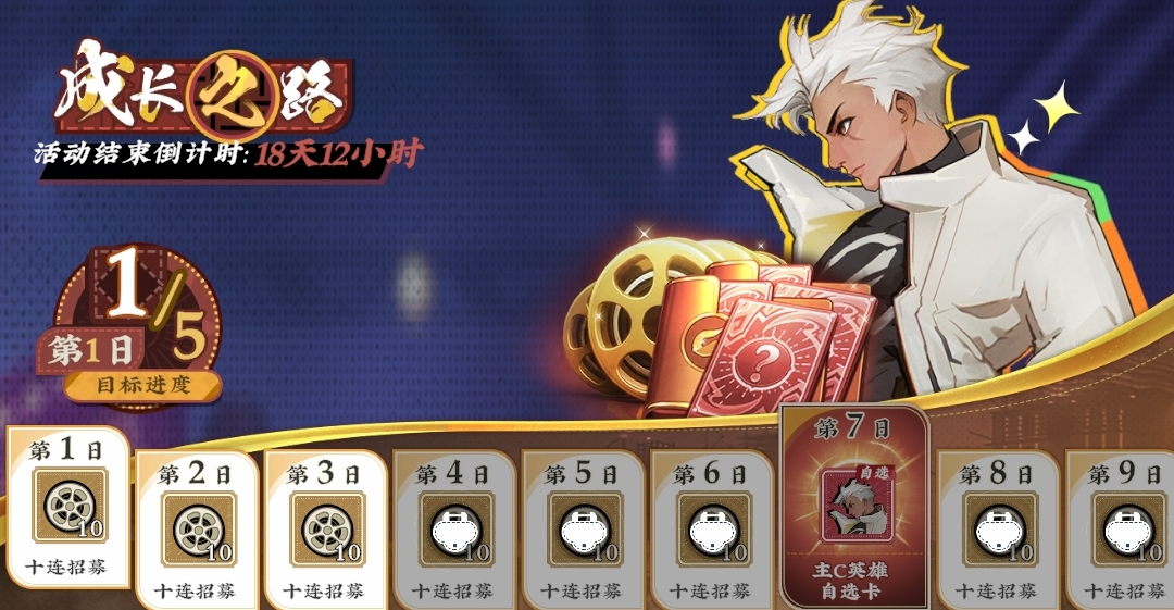 游戏启动即激活,为期21天,自首次登录起倒计时。每日更新任务目标,全部完成后可领取当日奖励,含【普通胶片盘】及【主C英雄自选卡】(第7日、第14日)。未完成任务可顺延至次日,只要在活动结束前达成全部要求,即可领取全部奖励。