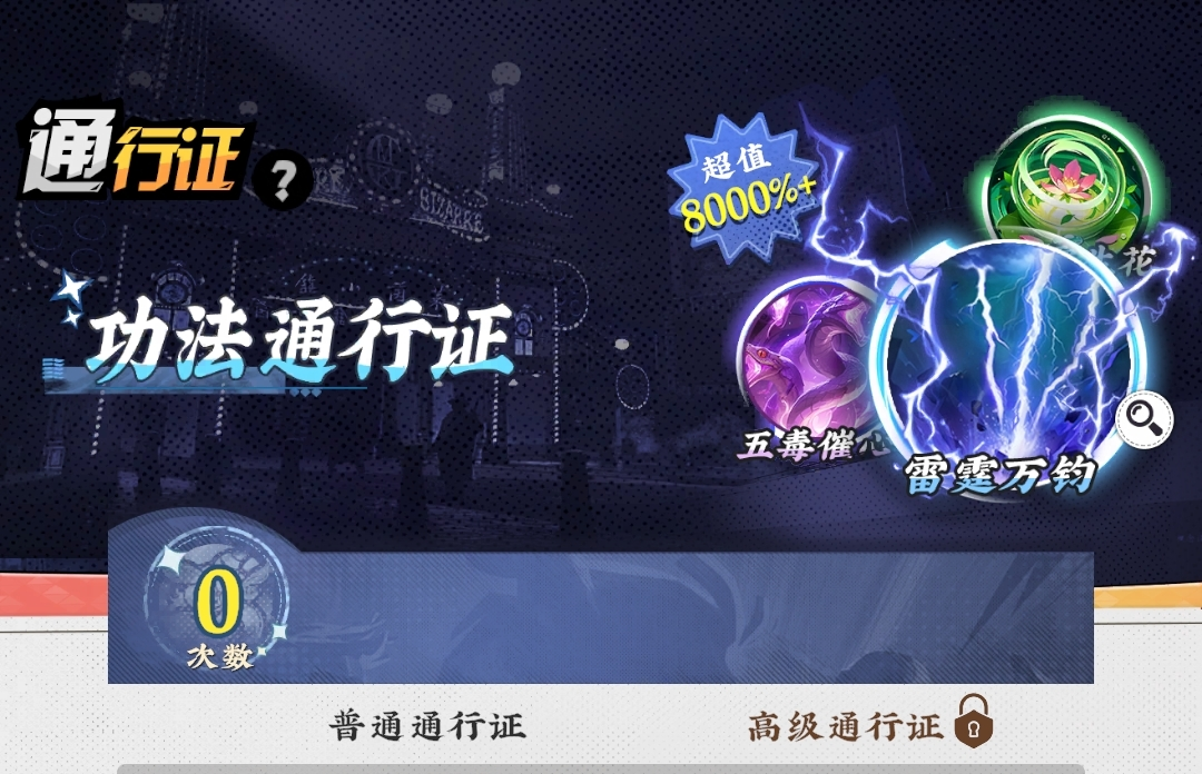 功法通行证同为98元,主要产出【秘籍残页】与【功法碎片】等关键功法养成资源。