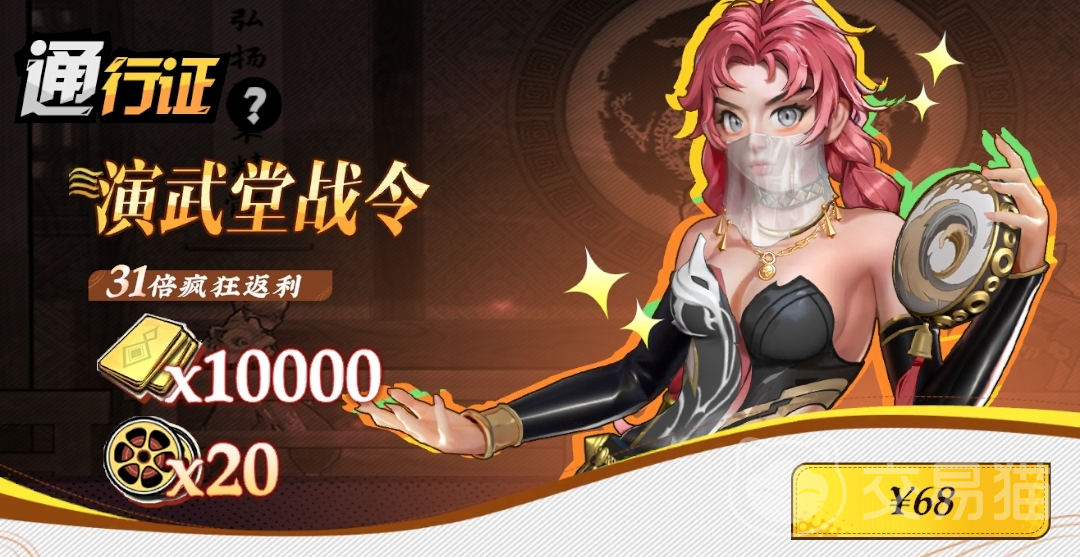 演武堂战令售价68元,通过参与演武堂副本挑战,可稳定获取10000【金砖】与20【心愿胶片盘】,资源回报率表现稳健。