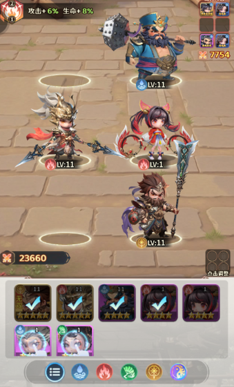 角色成长体系采用双轨驱动模式:等级提升与星级进阶并行。每升一级可领取领悟宝珠,用于强化全队共通属性,如生命上限、攻击强度、暴击率等;主角等级提升后,其基础属性加成将同步辐射至所有已上阵武将,实现“一人强、全员强”的协同效应。当主角达到指定等级后,可消耗进阶石解锁更高阶技能效果。升星则需通过定向任务链完成,每次升星均带来固定数值增幅,涵盖攻击力、防御力、技能冷却缩减等关键维度,确保战力成长路径清晰可控。