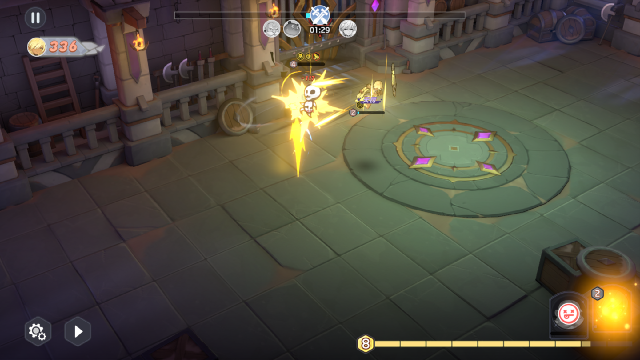 第三关重点在于控场与打断。须通过“急冷”反应延缓敌方攻击频率;光耀元素的大招无需过早施放,应预留至亚瑟王即将发动群体技能的瞬间,以此实现有效打断,瓦解其范围压制能力。