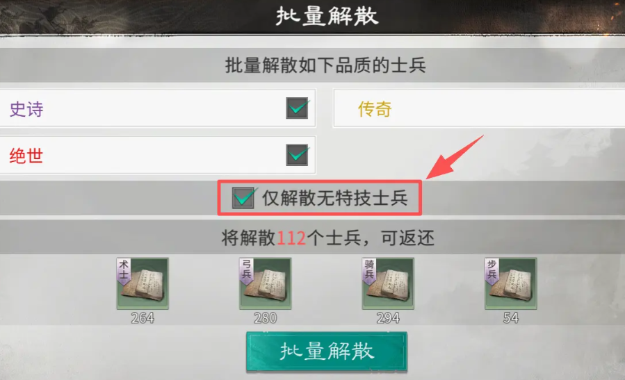 士兵等级与兵营等级严格同步,每日国家募兵所的征兵任务必须完成。征兵令应集中用于兵营升级,优先将兵营升至30级——这是所有后续士兵养成的前提条件。征兵过程中产生的冗余单位,建议统一解散无特技者。即便为绝世品质,若无特技加成,其实战价值仍低于拥有特技的传奇士兵;且解散后可返还部分资源,实现资源高效流转。在具体培养顺序上,务必遵循“技能等级优先→能力强化次之”的原则。