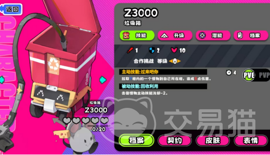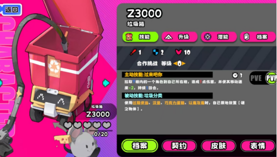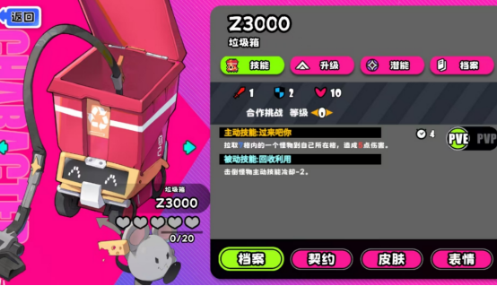 其被动机制进一步强化战术纵深——当玩家打出“过期便当”等指定手牌时,可在当前格生成一个隐形陷阱。敌方单位踏入即触发多重负面状态,大幅提升博弈复杂度。在合作玩法中,垃圾箱还拥有独特的技能冷却缩减机制:每次成功击倒怪物后,主动技能冷却时间减少两回合,使其在连续作战中实现高频技能循环,持续输出压制力。