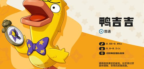 鸭吉吉为普通属性精灵,毛发柔软蓬松,但对肢体接触表现出明显排斥反应,性格独立且边界感强。该设定影响部分亲密度相关技能触发条件,需玩家在互动方式上采取差异化培养策略。