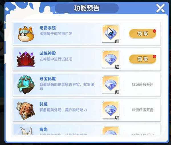 3、等级成长奖励:随着角色等级提升,每升一级均可领取对应等级礼包,其中部分关键节点(如30级、50级、70级等)将包含稀有时装作为额外奖励。相关提示将在主界面右上角常驻显示,便于玩家及时查收。