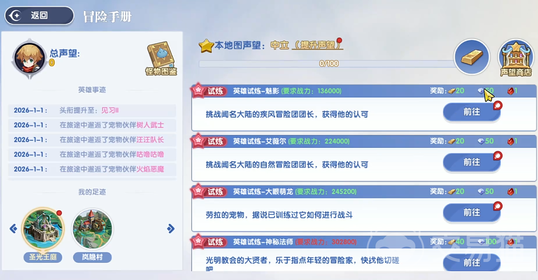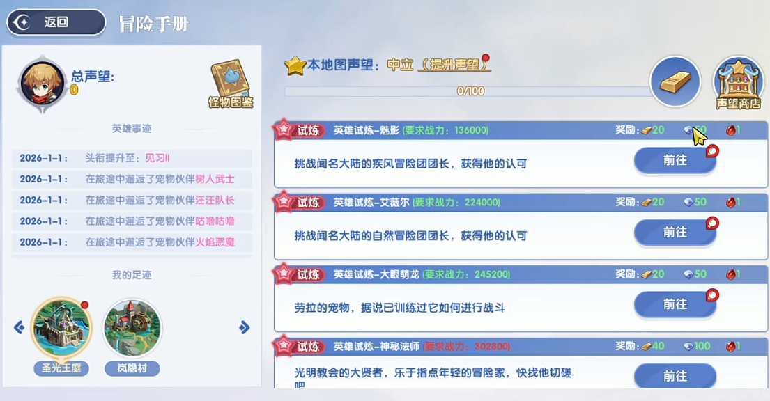 声望值获取渠道明确且具备成长梯度:其一,角色头衔随等级提升自动进阶,每阶晋升均附带固定声望奖励;其二,契约并培养高稀有度宠物,可按宠物星级与品质持续获得声望加成;其三,挑战试炼神殿副本——该玩法采用逐层递进式塔防机制,每层设有独立终极BOSS,首次通关即结算声望,后续支持一键扫荡重复领取;随着角色等级或战力提升,可解锁更高层数的试炼挑战。