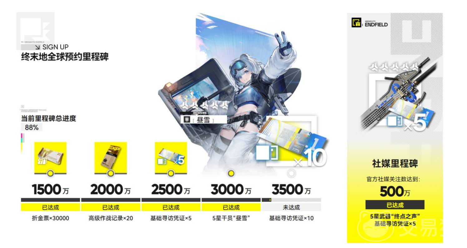 ——关键节点3000万人达成后,全服注册账号将自动获赠五星干员「昼雪」,该角色具备高泛用性与实战强度,对零氪及轻度付费用户而言,是开服即战力的核心保障;