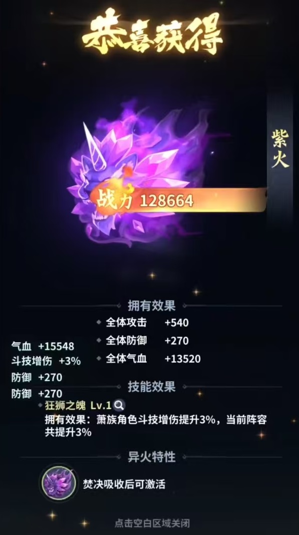 游戏初期,玩家通过主线任务即可解锁首种火焰——紫火。该火焰虽属兽火范畴,但作为入门级火种,其作用不可小觑:一方面提供稳定的攻击、防御与气血加成;另一方面,同步激活核心功法《焚诀》的初始形态。值得注意的是,《焚诀》并非独立技能,而是以异火为养料持续进化的功法本体,二者构成“火养诀、诀炼火”的双向成长闭环。