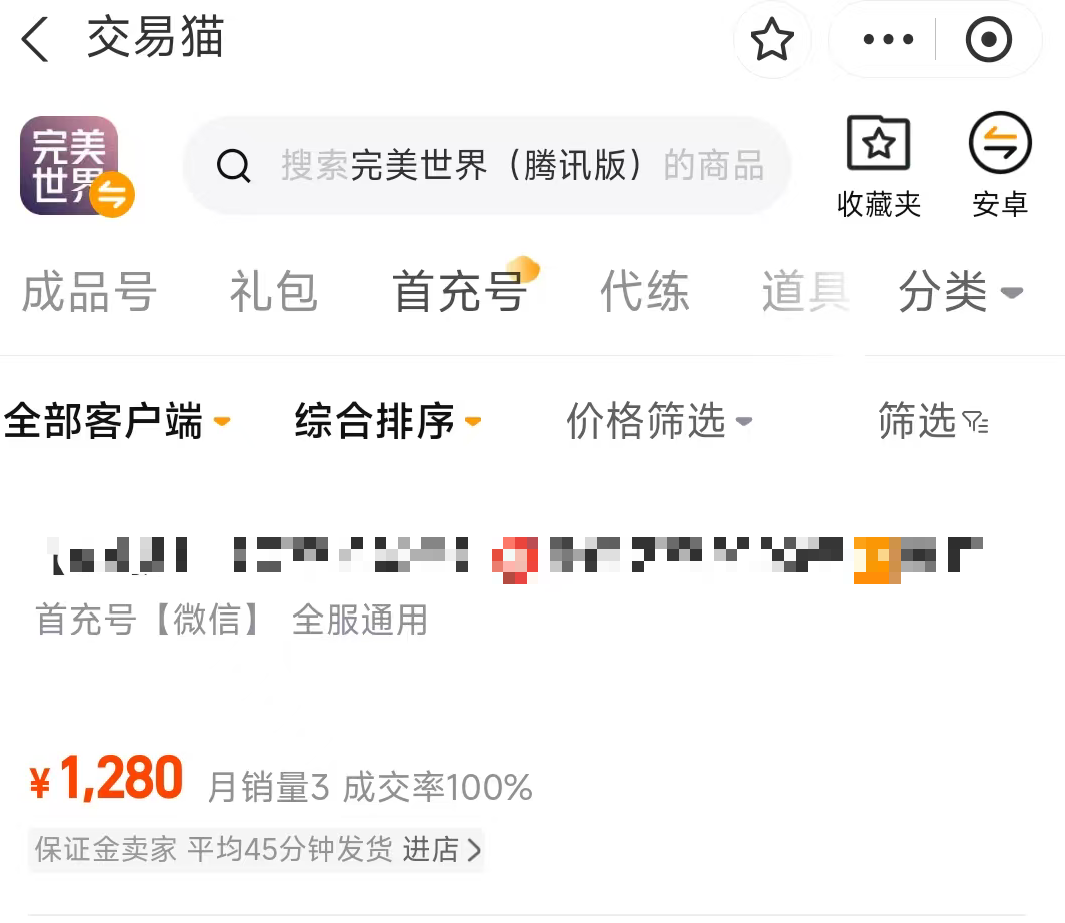 完美世界这个游戏的养成时间还是很多的,很多玩家是不太喜欢这种漫长的养成时间,想要直接购买一个完整的成品号,这样刷高级副本会轻松很多,但是不知道有哪些交易平台,因此就会问完美世界账号交易平台有哪些?可以使用交易猫平台进行购买,该平台提供的游戏种类很多,而且交易猫成为了排名第一的游戏交易平台。