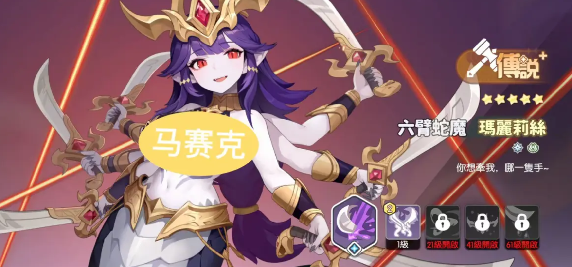 马丽莉丝以低血线换高爆发为核心逻辑:生命值低于40%时,普攻附加吸血与暴击率提升;奥义拥有超长前摇与高倍率伤害。该机制使其在PVP快节奏对抗中具备反杀潜力,但中期副本BOSS多段控制链极易打断其节奏,且传说品质带来的养成成本与其泛用性不匹配。