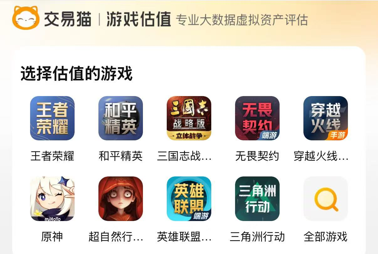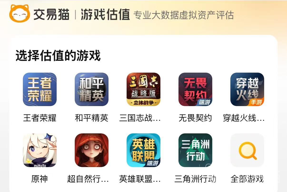 手里有闲置账号要出售的更要来交易猫了,它可以免费给账号估值,免费估值范围覆盖24款热门游戏。交易猫的估值系统特别权威,依据大数据库快速掌握账号价格趋势,迅速又准确地给出估值结果,大家卖号就不担心标价标低了亏钱。