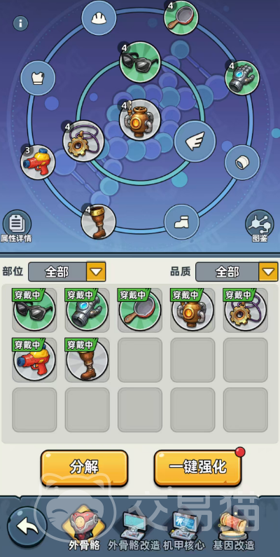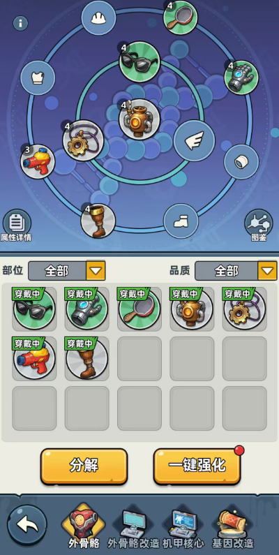 装备体系包含常规护甲、鞋类等基础部件,另设外骨骼系统——该类装备提供全局属性加成,且对所有角色生效时,均以统一数值上限提升基础能力值。技能书系统则赋予角色差异化成长路径:每名英雄均可装配专属技能书,激活对应主动或被动技能效果。因此,在实战部署中,合理配置外骨骼与技能书,是释放英雄潜能、构建高效作战体系的核心策略。