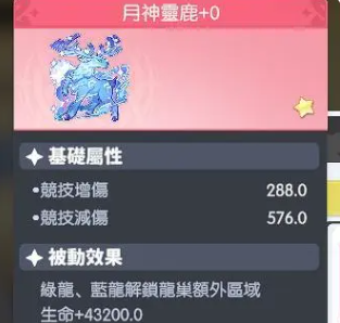 月神灵鹿:高容错率防御向主力,专精持久作战与BOSS战应对。竞技减伤高达576点,配合288点真伤保障基础输出能力;被动提供4320点生命值加成,大幅提升全队生存阈值。其被动同步解锁绿魔与蓝魔龙巢的额外区域,定向产出防御系龙魂及恢复类道具,形成“承伤—续航—资源反哺”的闭环机制。在面对高频率范围伤害或长时间机制战时,该魔物常成为翻盘关键支点。