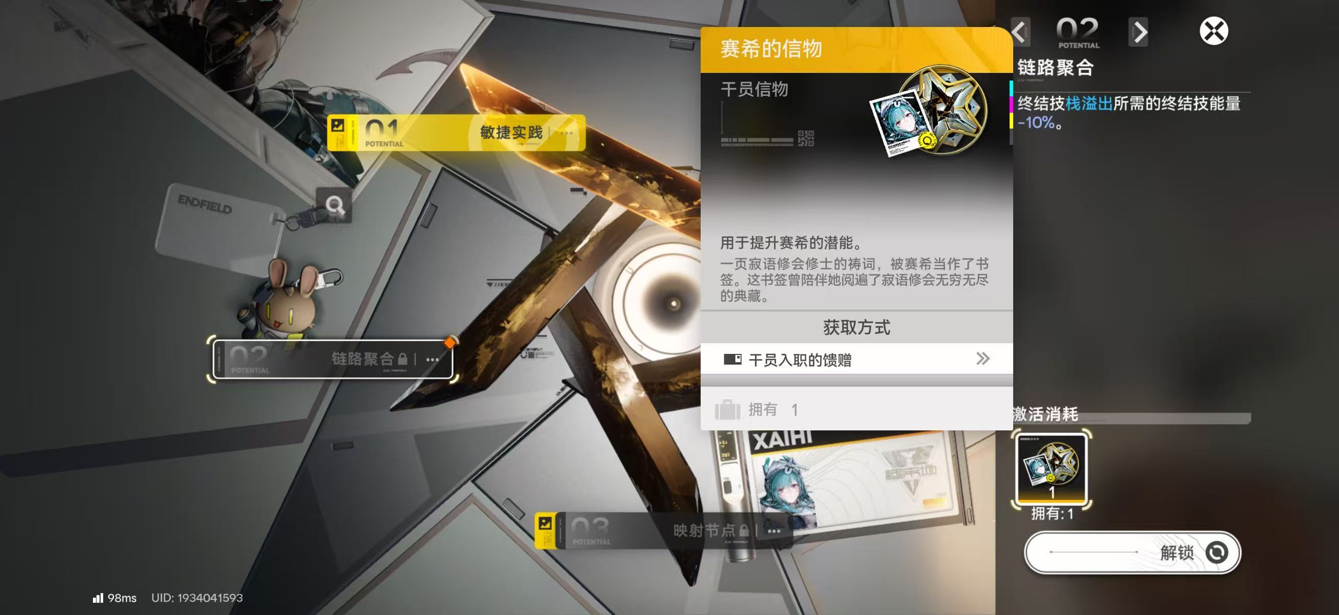 完成信物收集后,进入干员界面,点击【潜能】标签即可查看当前可解锁节点。系统将根据持有信物数量自动点亮对应等级的潜能槽位。需特别注意:潜能解锁存在等级门槛,干员需达到20级方可首次突破,突破后等级上限提升至40级,并同步开放更高阶潜能节点,形成“等级—突破—潜能”三位一体的成长闭环。