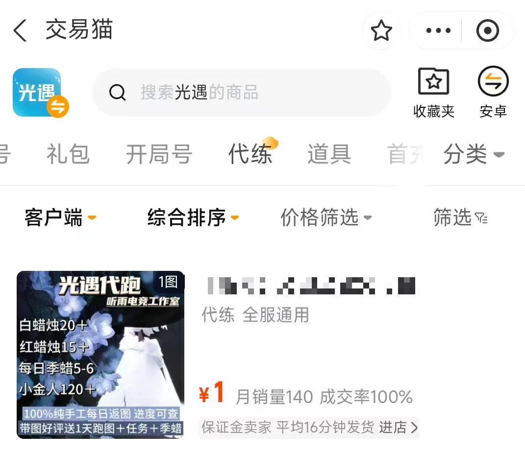 此外,针对购号后缺乏持续上线时间、担心错过日常任务、季节先祖复刻或限时活动奖励的用户,交易猫亦提供覆盖《光遇》全成长路径的代练服务,包括但不限于先祖节点解锁、季节毕业、动作收集、光之翼积累、好友位扩容等,所有委托均按约定周期执行,交付结果可查可控。