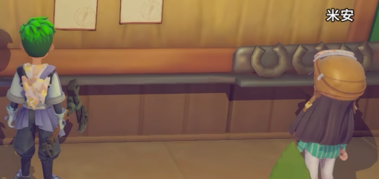 米安是玩家踏入沙石镇后首位接触的NPC。从新手教程开始,她便全程陪同,系统讲解采集机制、工具制作流程、工坊基础操作等核心玩法。其站位常位于主界面入口区域,职责覆盖信息传达、任务分发与流程指引,这种“窗口式”服务定位,自然促成了“前台领班”的民间称谓。