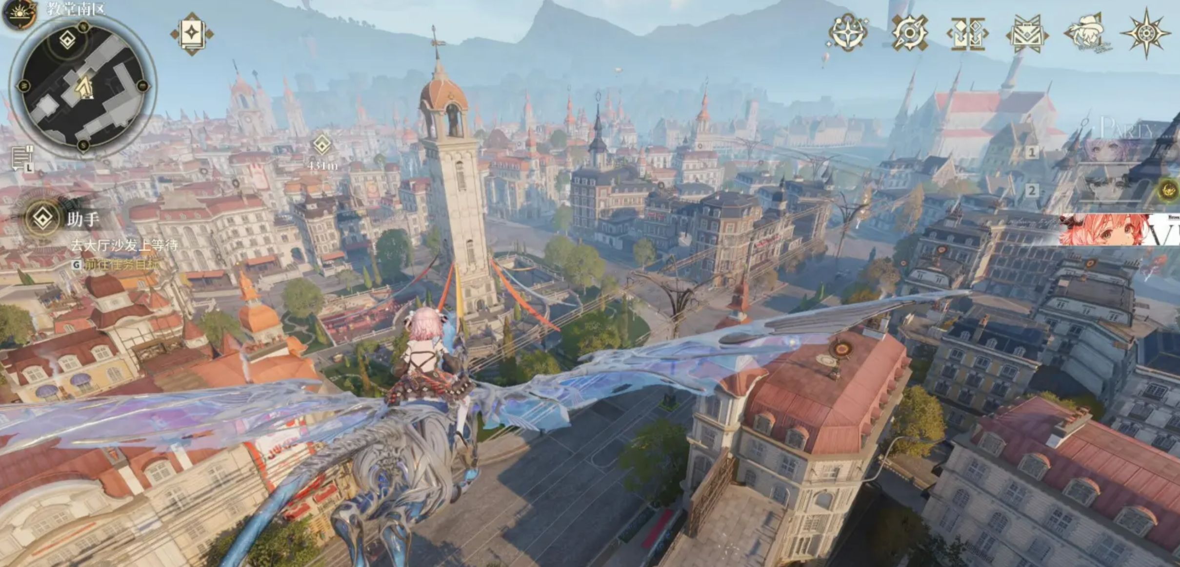 城区地形高低起伏、巷道纵横,建议优先启用坐骑系统以提升移动效率。在主干道疾驰时,合理运用漂移过弯可维持高速连贯性;进入狭窄街巷后则需及时下马步行,避免因操控受限导致失误。特别值得注意的是,部分标志性建筑顶部设有仿生翼激活点——骑乘状态下触发后可展开滑翔,大幅拓展垂直探索维度。面对陡峭立面或高差显著的平台,切勿尝试徒手攀爬,应使用钩锁进行精准锚定跃升,借此抵达屋顶区域,搜寻散落于檐角、通风管后方等隐蔽位置的宝箱。