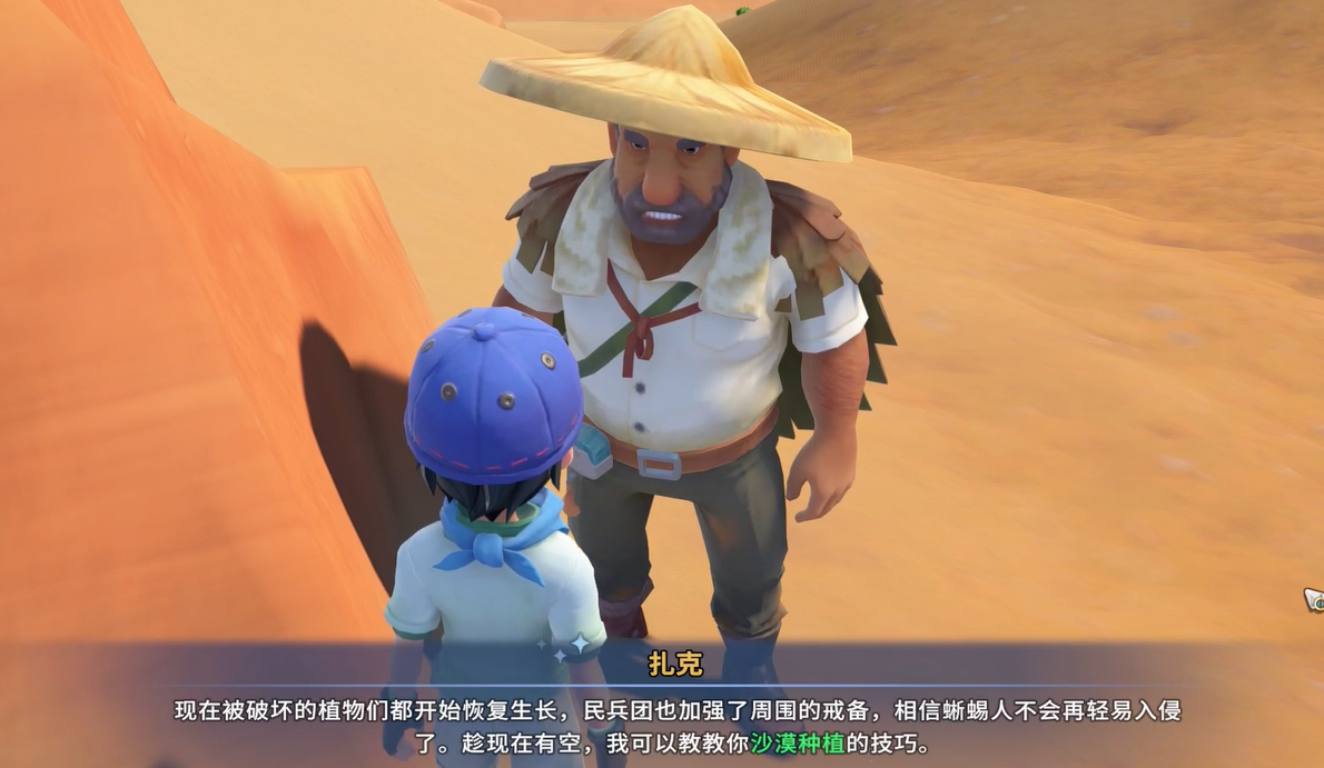 图纸到手后,需准备对应材料合成工具包:铜棒×3、青铜锭×6、橡胶管×3、零件×3。上述材料在游戏前期均属常规产出物,获取难度较低。合成成功后,前往温室与扎克对话,即可激活沙漠种植系统。在此过程中,扎克会同步传授基础种植机制说明,对话结束后,沙米种子将自动加入玩家物品栏。