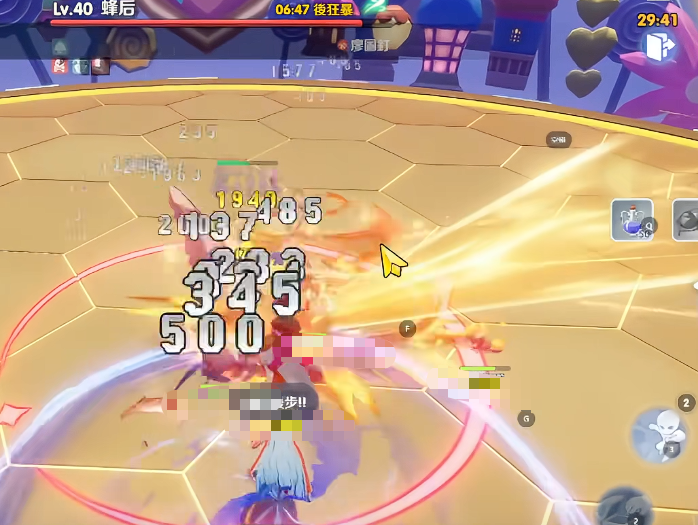 当血量低于25%时,Boss进入狂暴阶段,频繁施放两种高危AOE:其一为黄色环形爆炸领域,半径覆盖近半个屏幕,需在光效提示出现后1秒内撤离至边界外;其二为大范围爱心雨,下落延迟短、密度高,建议采用Z字形小步位移规避。每次AOE结束后,Boss均会陷入3秒虚弱状态,期间受击硬直延长、防御下降30%,是终结战斗的唯一窗口期。