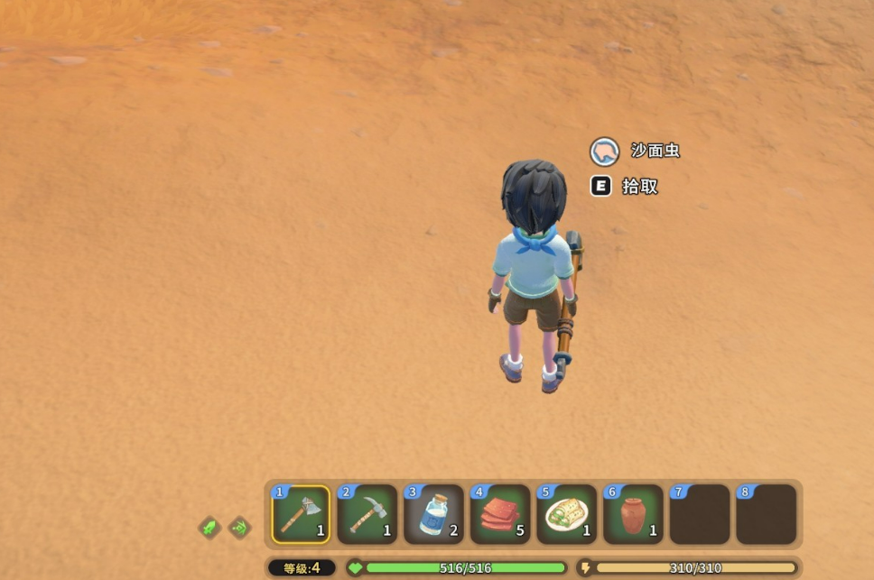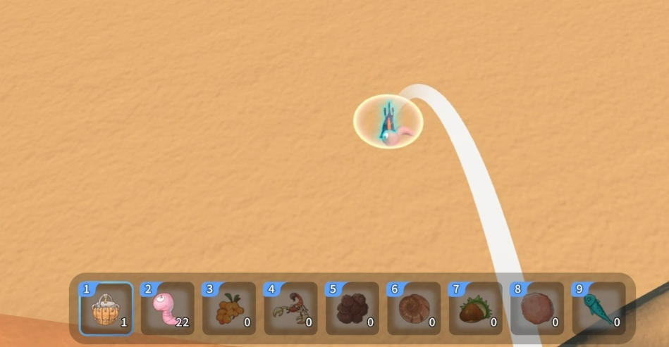 仅有工具尚不足够,还需配备有效诱饵。游戏中指定使用的诱饵为“沙面虫”,该生物广泛分布于开放地图的沙地与荒野区域,建议一次性收集5只以上,以应对多次失败后的补给需求。其体型微小、移动缓慢,便于识别与捕捉。