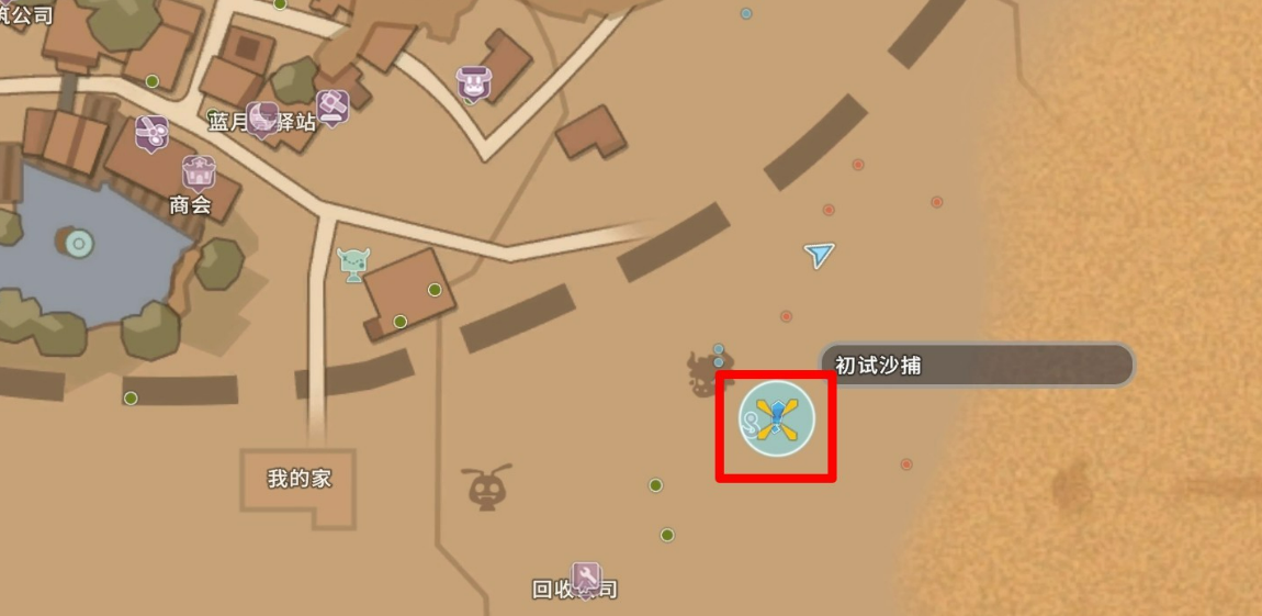 完成前置准备后,前往回收公司东侧的专用沙捕池。此处为唯一可触发沙捕交互的地点。抵达后,先向池中投掷1只沙面虫作为引诱。随后保持观察,待目标生物“沙鲢”游近并出现咬饵动作时,即进入可操作窗口期。