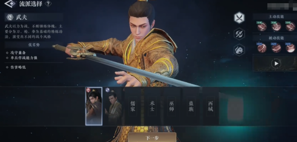 游戏采用渐进式职业解锁机制,初期仅开放“武夫”一职。该职业以近战为核心,兼具高爆发伤害与突出的生存韧性,是新手阶段最易上手、容错率较高的选择。在属性培养方向上,建议优先提升气血值——随着章节推进与副本难度跃升,扎实的生命基础将成为持续作战的重要保障。
