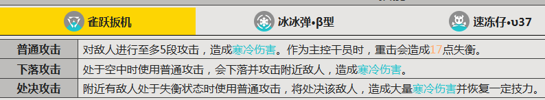 战斗节奏由多段式普攻支撑——五段连击配合主控状态下的17点失衡值,可高频触发处决攻击,不仅造成高额伤害,还能恢复力量值,实现持续作战的能量自洽。主动技能“制冷弹”兼具控制与延时伤害:爆炸命中后若成功冻结敌人,将在延迟后追加一次范围伤害;连携技能则侧重团队支援,部署即释放能量冲击,同时牵引周围敌方单位,优化我方阵型与集火效率。