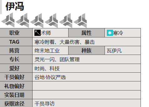 明日方舟终末地伊冯作为六星干员,凭借其融合科技与寒霜的战斗体系,迅速成为高人气输出核心。她兼具时尚气质与战术深度,技能机制围绕“寒冷附着—冻结控制—重击爆发”形成严密逻辑链,为玩家提供兼具策略性与爽快感的作战体验。
