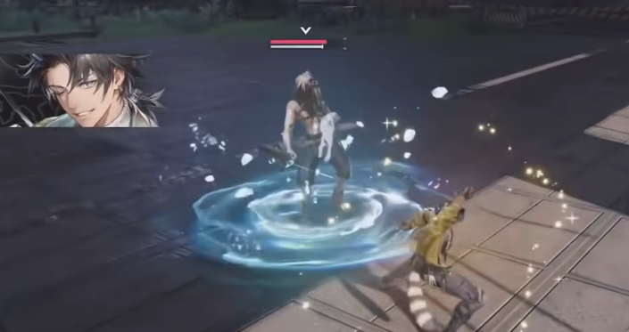 二技能“钓术”为连携技,当周围存在敌人被施加法术类异常状态(如灼烧、感电、侵蚀等)或源石结晶被消耗时自动激活:在目标脚下开启垂钓裂隙,造成物理伤害并恢复固定技力值。该技能存在概率性事件——有几率钓出“珍鳞”,触发高额倍率增伤及额外技力回复,且仅计算一次触发收益。