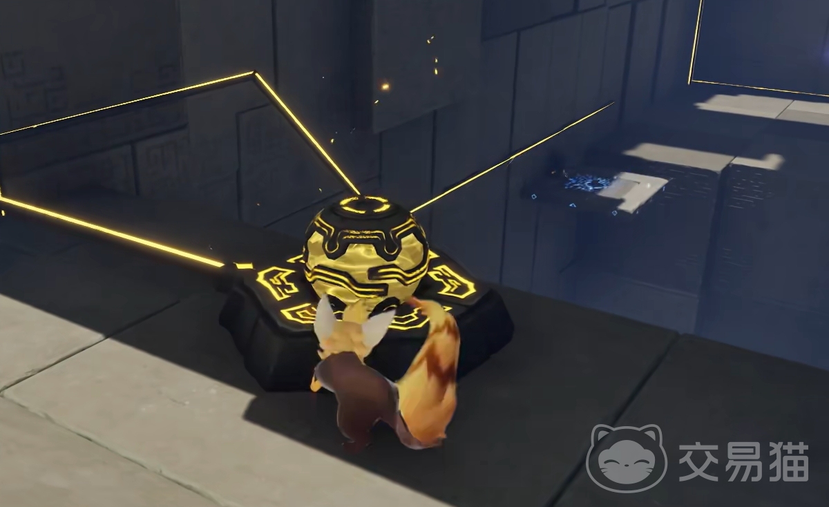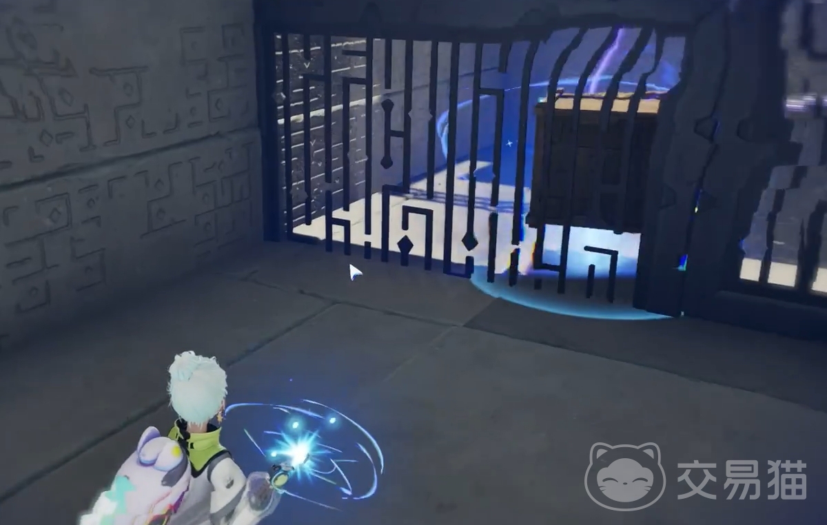 该地宫坐落于闪电之森正下方。初始区域中央电路呈断开状态,两节点间被木箱阻隔。玩家需操纵紫色电箱撞击木箱使其移位,随后将电箱精准置于两个节点之间,完成通路连接,前方闸门随即开启。首个宝箱即藏于该紫色电箱后方平台处。
