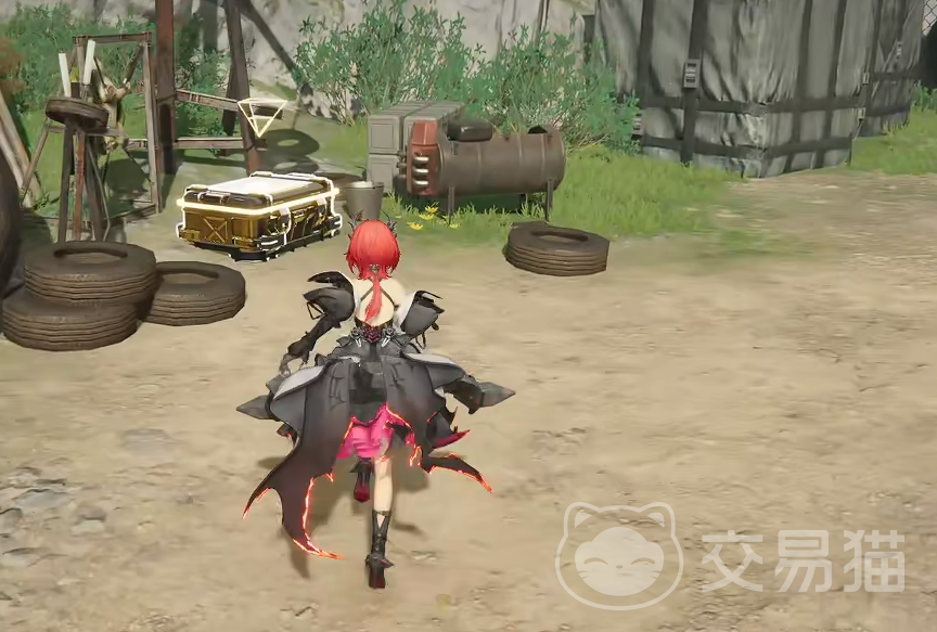 铁门因通电已可交互,按下机关后开启通道。进门后先向左抵达集装箱区,采集一处醚质;再沿东南方向登上楼梯,于阶梯平台发现首个固定采集点;随后转向西南下楼,在左侧轮胎堆旁开启隐藏宝箱。右侧存在敌对单位,建议优先清理以保障后续行动安全。