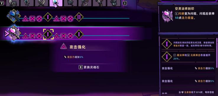 当前版本中,红空灵构筑更具实战优势,其中关键附魔为“消耗1点能量豆释放2枚卫星,持续约8秒进行追踪射击”。该效果构成红空灵体系的底层输出基础,直接决定卫星上限与持续压制能力。其他优化方向包括:提升能量豆上限、使卫星攻击视为魔法弹、或替换为射线形态攻击等,均可进一步细化输出结构与资源利用率。