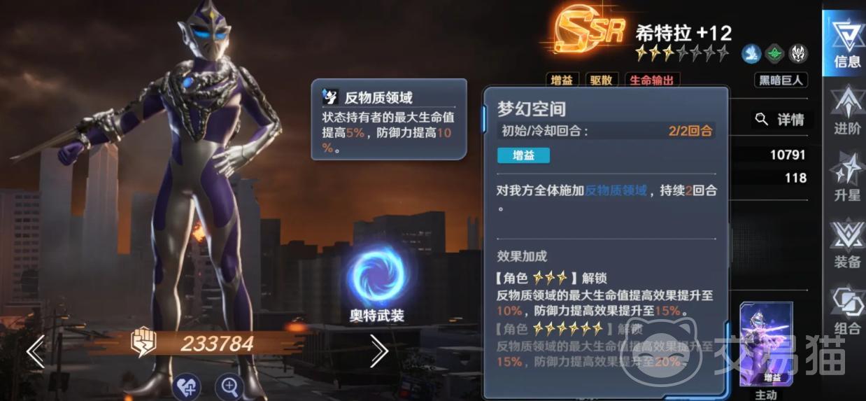 赛罗月神奇迹型奥特曼——生存向辅助顶点,具备伤害分摊与全队输出增幅双重效果,显著提升容错率,在高难度副本中战略价值尤为突出。